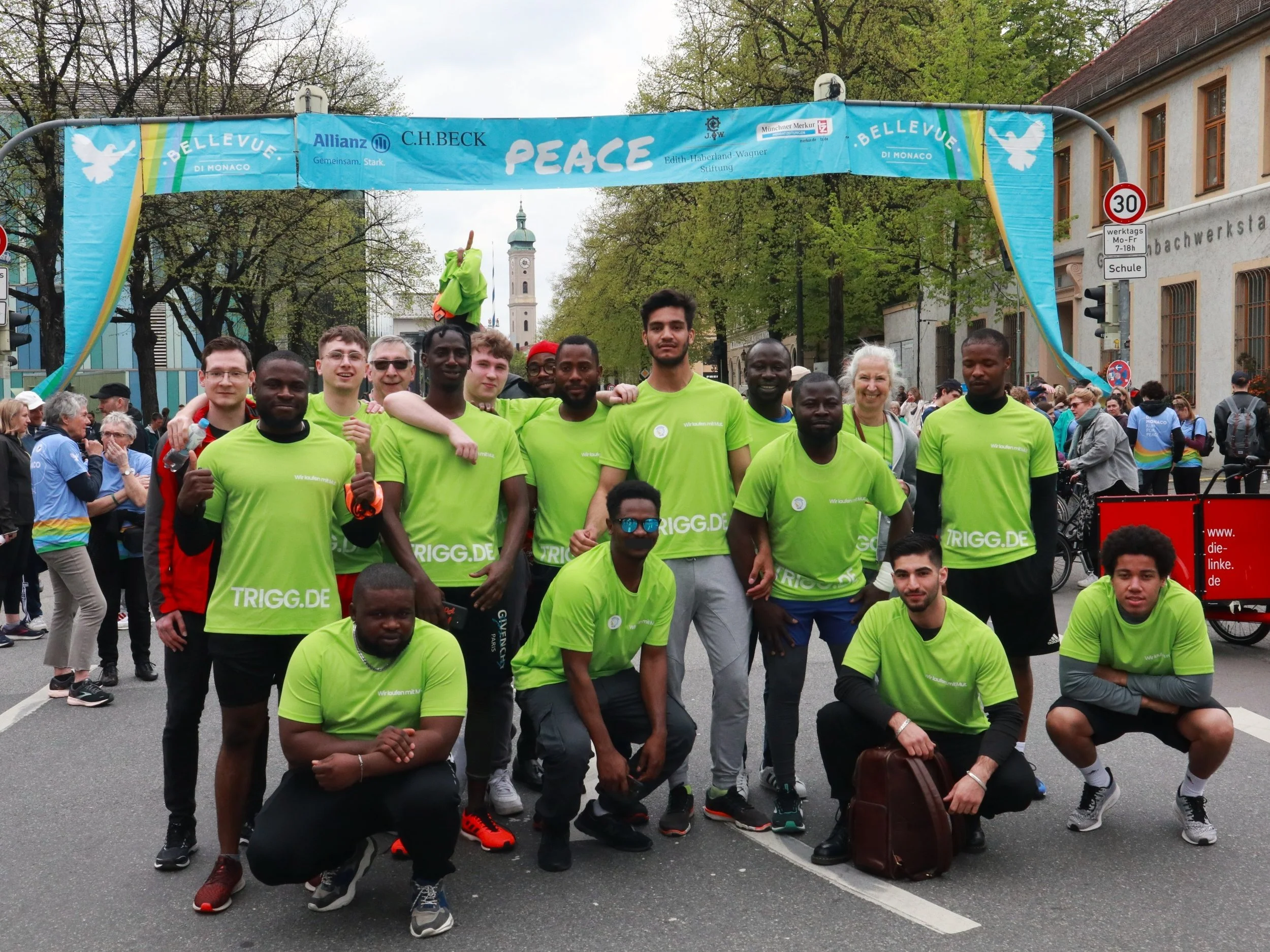 Und dann ist es soweit! Unsere Truppe hat von Sport Reiser in WOR wunderschöne TRIGG-T-Shirts bekommen, damit fallen wir im Feld schon ein bißchen auf. Es herrscht Volksfest-Stimmung, Bands spielen, der Lauf hat allen Spass gemacht! Es laufen Tausende mit, die ganze Innenstadt ist gesperrt. Jeder läuft sein Tempo. Einer unserer Leute lief die ganze Strecke zweimal und ein anderer kam als allerletzter knapp vor dem Besenwagen ins Ziel. Aber ins Ziel kamen alle!